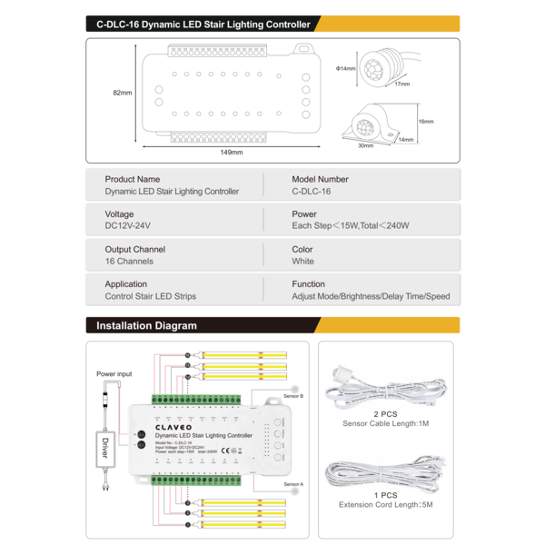 • Gebruiksvriendelijke Controller: Bedien uw trapverlichting eenvoudig met de alles-in-één controller.